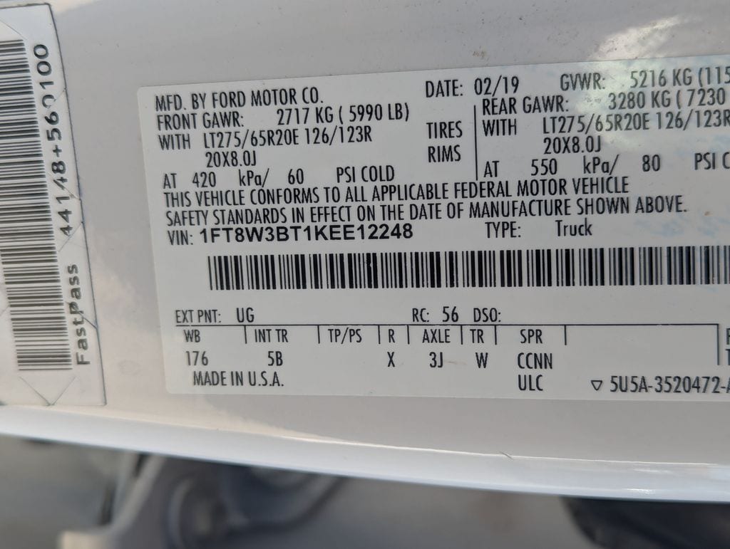White Platinum 2019 Ford F-350SD Lariat 4WD TorqShift 6-Speed Automatic Power Stroke 6.7L V8 DI 32V OHV Turbodiesel 4WD.