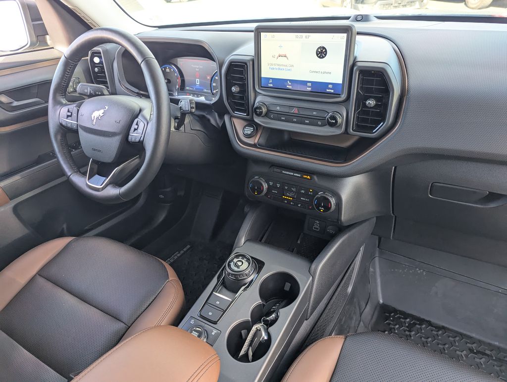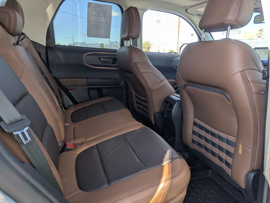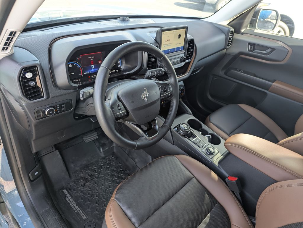 I got a 2025 Big Bend with the black diamond off road package. The steel modular front and rear in combination with bush guard gives this year model. A very aggressive off road look. With the ability to easily mount accessories and power them with the factory installed auxiliary switches. Hitch receiver seamlessly mounted into the rear steel bumper flanked by some very chunky recovery points. The upgraded aluminum rims wrapped with Continental all-terrains. It make this the most capable bronco sport yet. The interior of the 2025 has been updated with a new 13 inch touchscreen with Android Auto and apple car play. The lines of the dash flow elegantly from the new infotainment screen to the new all digital 12 inch gauge chaster. Toggling through the different modes on the gauge chaster is very intuitive, and all the displays are laid out very cleanly. Moving from gauge chaster the center storage cubby just below the infotainment screen there is a wireless charger and USB/ USB-c ports. The passenger side of that same cubby gets a handle and a matching one on the roof just in case the driver bucks a little too much. The passenger also gets a mesh storage area. That leads us to the fact this vehicle has tons of storage options all throughout. You have pockets on the sides of the front two seat big enough for the latest new phones. Very generous door storage on all four doors plus huge glove box and center console with 12 volt outlet. The back side of the center console has air vents and another 12 volt outlet plus a 110 outlet. Now getting to the cargo area it is massive for a crossover SUV. With off road package you get a cargo management system and a very nice rubber mat. Under that there is a full size tire plus scissor jack and funnel to use with the capless filler system. On the liftgate there isa pair of very bright led lights turned on with a switch in the cargo area. This feature packed vehicle has tons awesome gadgets and hidden a little homages I spend all day just talk that. At the end of the day it is car. So how does it drive. It is wonderful, the steering and pedal response is beautiful. Rides very smooth and little to no road noise going down the highway. The active cruise control and co-pilot 360 have been very handy. The car literally drives itself most of the time. There is not enough good things I could same about this car. I love it and you pick one too. You will see what I mean. - 5.0